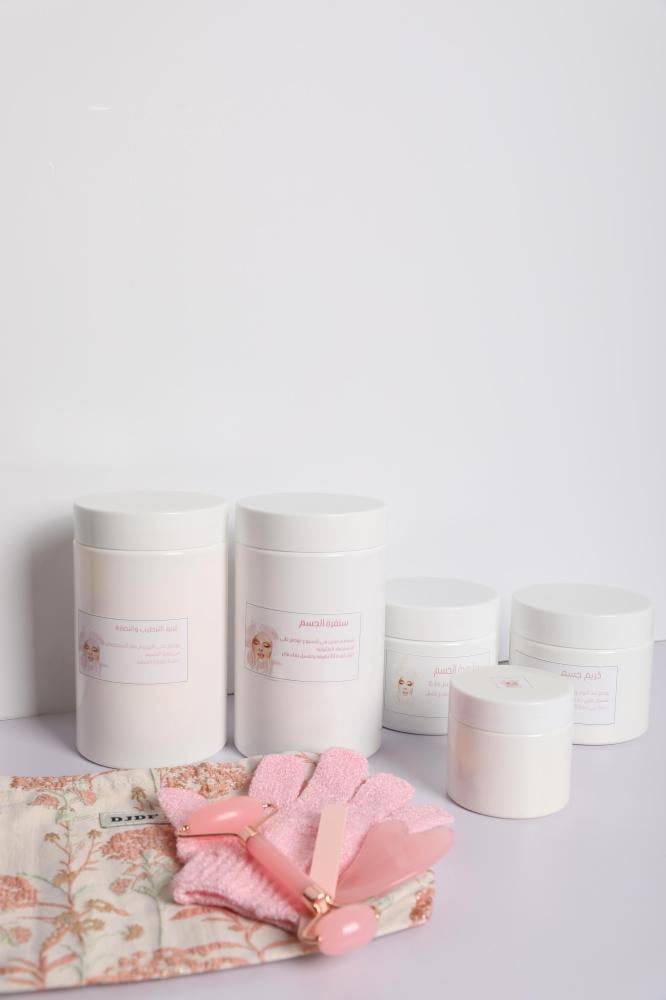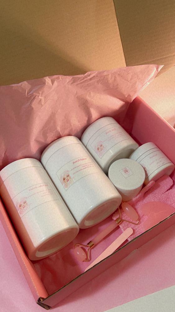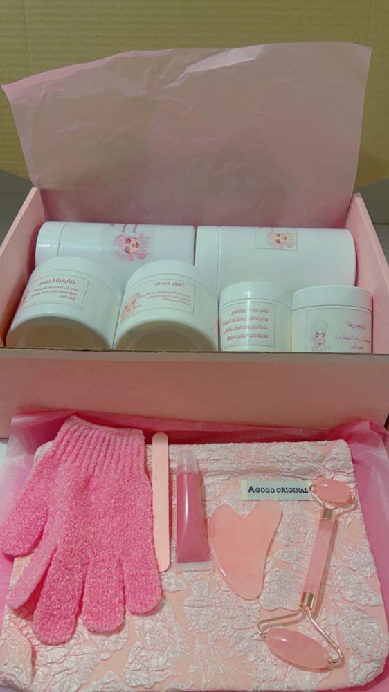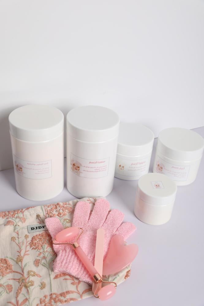 كريم الترطيب العالي جدا والنضاره الطاغيه والنظافه لك بعد كل شاور .. عبوة المقشر مهمه لابعد درجه اجباريه وهي المرحله الاولى اذا في بقع وتصبغات طويلة المدى واثار الحبوب والنمش والحروق القديمه يخلي الجسم مع الوجه ورديااات